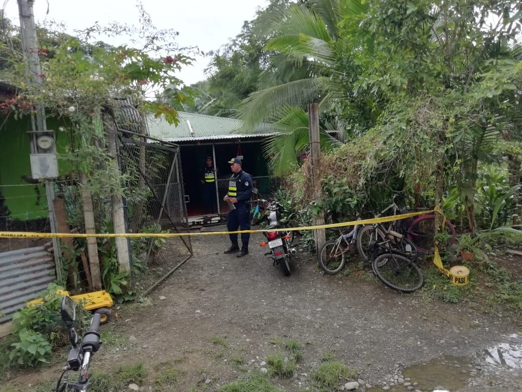 Agentes del Organismo de Investigación Judicial (OIJ) de Corredores se trasladaron en la mañana al lugar del doble asesinato para recolectar indicios, levantar los cuerpos y tratar de detener al sospechoso.