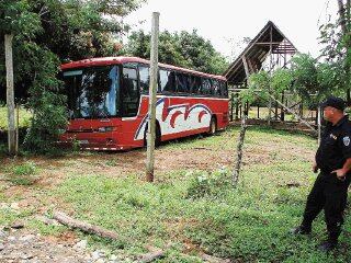 El bus, un Marcopolo modelo 1999, llegó al lugar escoltado por los ocupantes de un pickup blanco en cuyo cajón los desconocidos movilizaban una motocicleta.