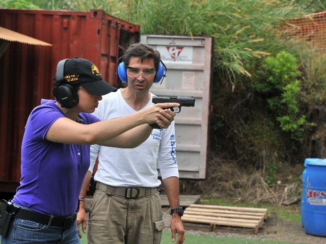 Carlos Cataño, instructor, habló con La Nación mientras capacitaba a una aeromoza, quien mostró interés en llevar en los próximos días a un sobrino, menor de edad, a recibir capacitación en armas.
