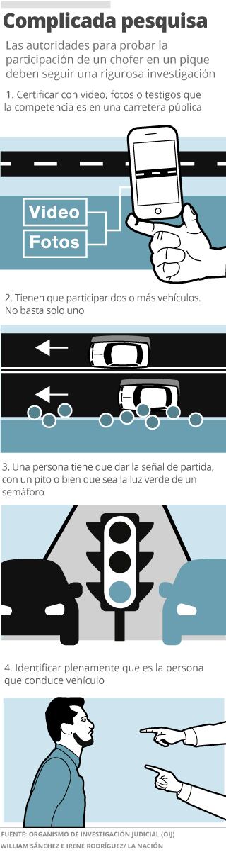 "Es evidente que se debe exigir la señal de partida, esa situación marca el inicio del pique de dos vehículos, pero yo diría que también se puede iniciar de una forma espontánea en una autopista, cuando un conductor adelanta a otro y este acelera. Los dos aumentan la velocidad y puede producir un accidente", agregó.