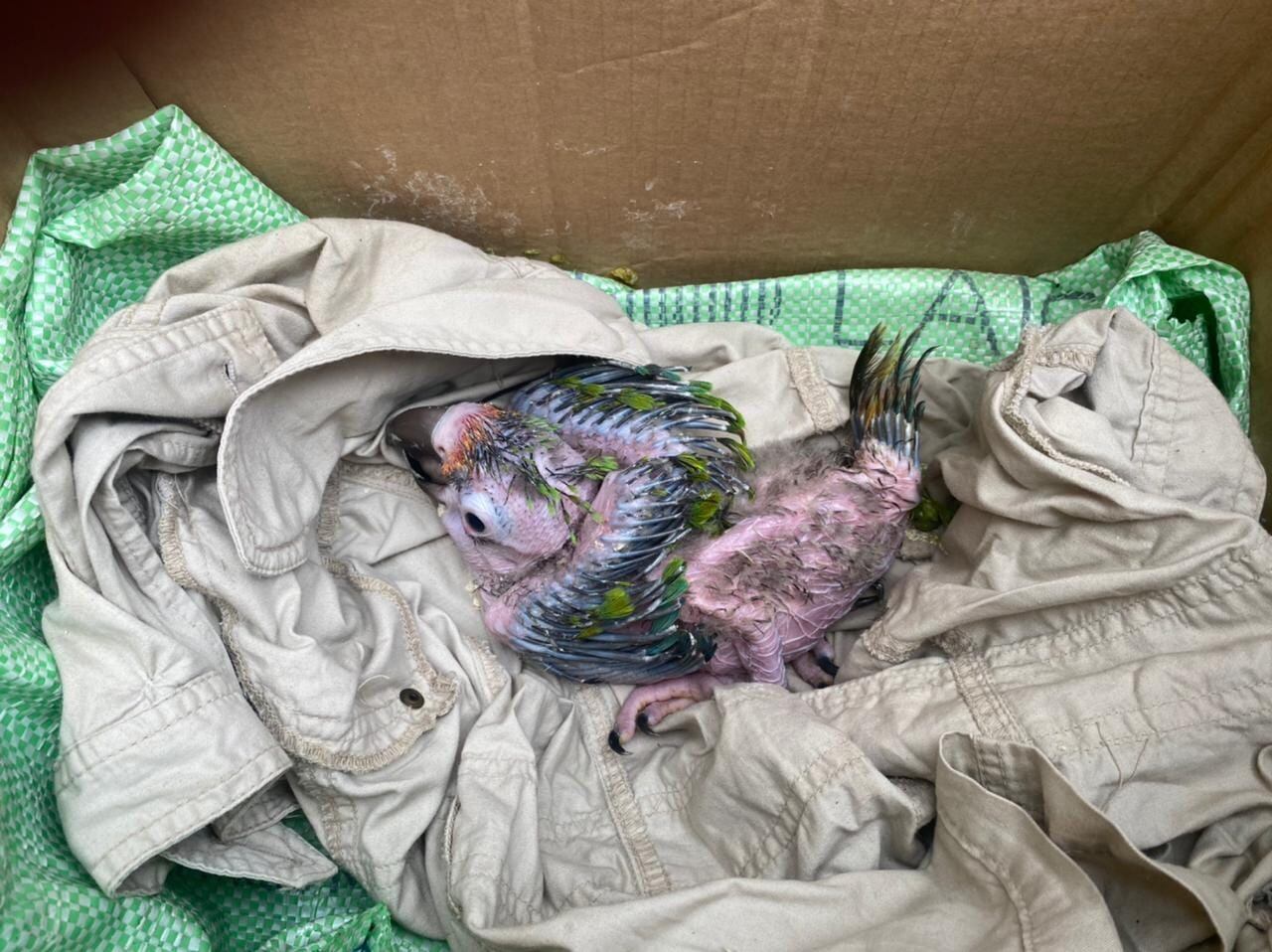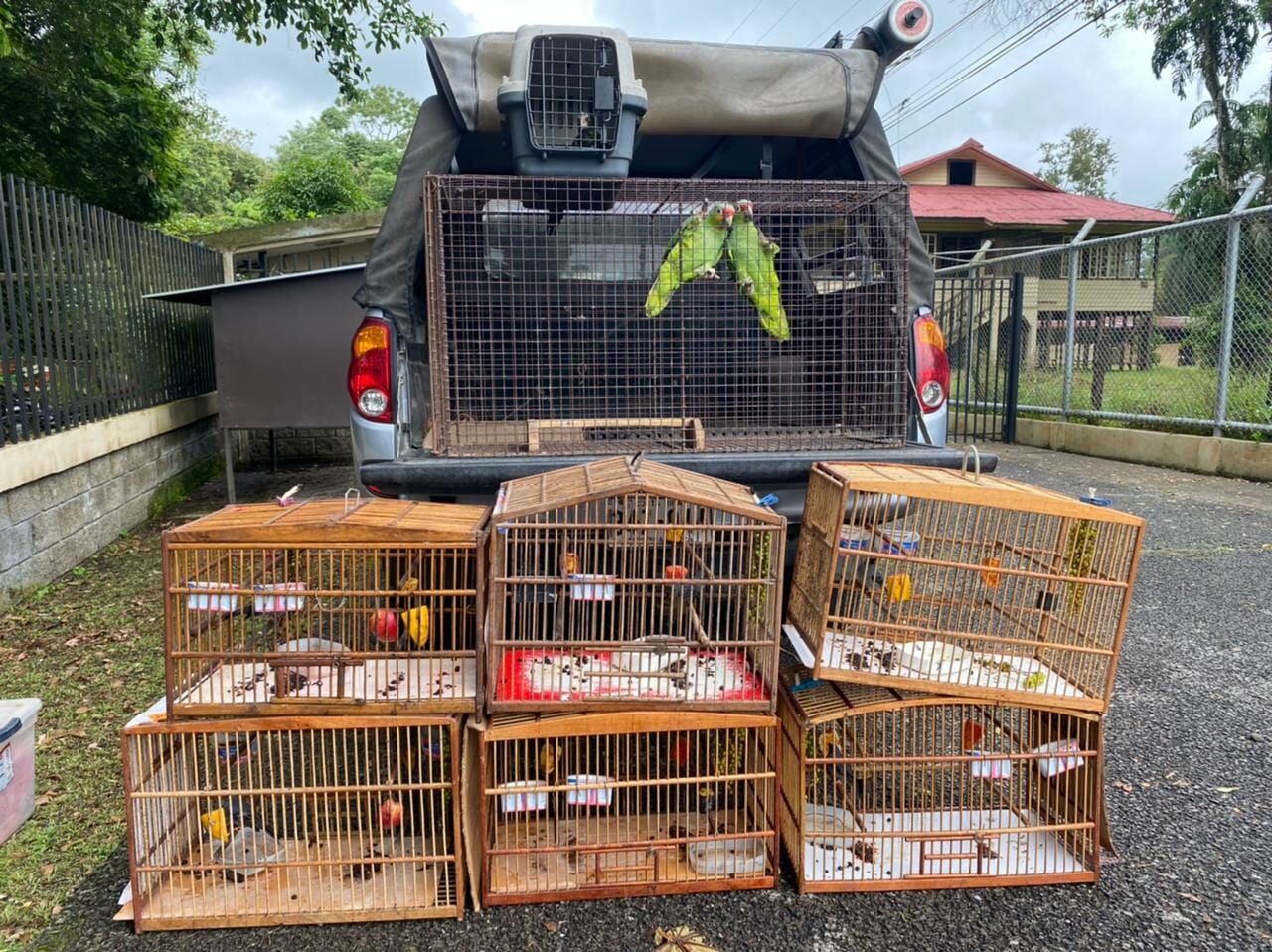 Una denuncia anónima ayudó a las autoridades a localizar loros de frente roja, lapas verdes, jilgueros y chucuyos, que permanecían encerrados en jaulas, aunque son considerados animales silvestres.