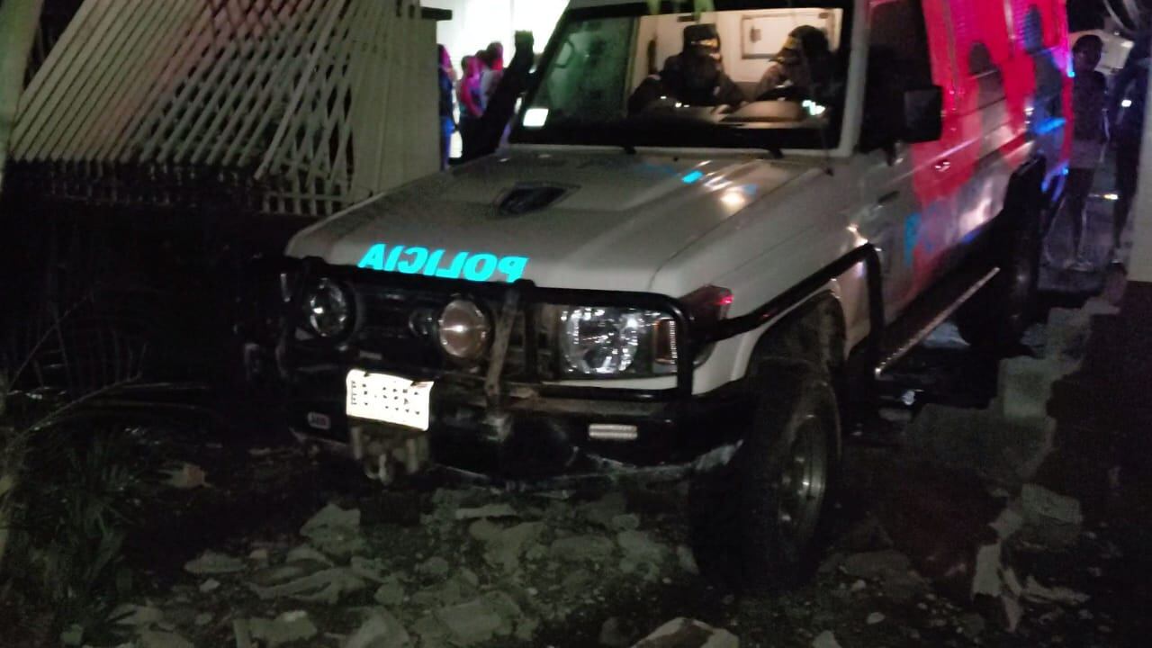 Mientras la situación estaba tensa en el barrio, una unidad de la Fuerza Pública que se dirigía a brindar apoyo se salió de la vía y colisionó contra el muro de una vivienda.