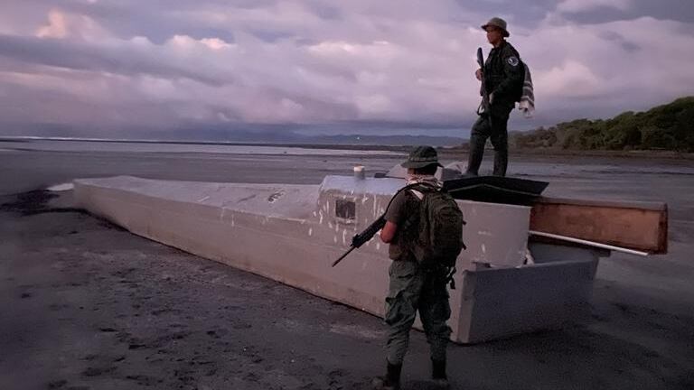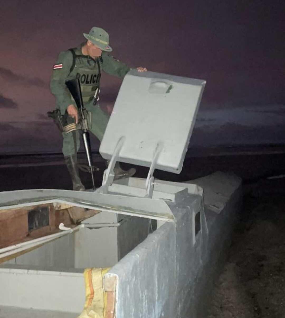 La embarcación fue encontrada por varios oficiales de la Policía de Fronteras destacados en el puesto de Punta Burica a las 6:40 de la noche del jueves. Tras una inspección, determinaron que el semisumergible tampoco portaban un nombre, matrícula ni bandera.