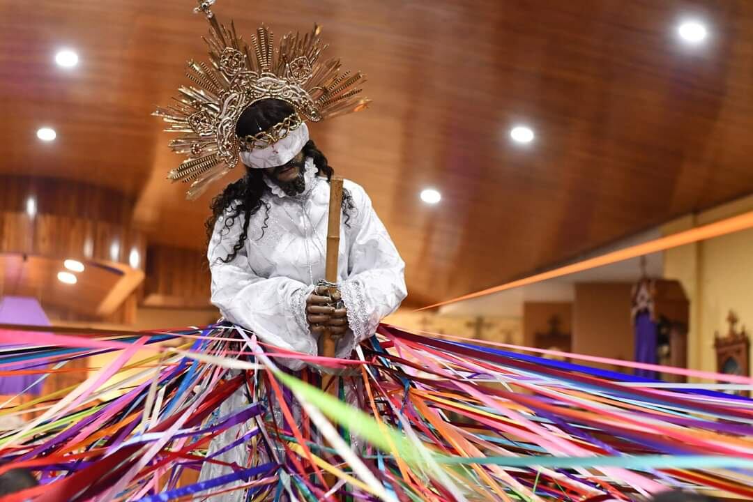 Al Jesús Nazareno se le vendan los ojos como una representación del momento en el que fue apresado por los soldados, la noche antes de ser crucificado. Este Miércoles Santo las cintas se colocaron a las 2 p. m., la eucaristía se realizó a las 4 p. m. y posteriormente se dio la procesión multitudinaria.