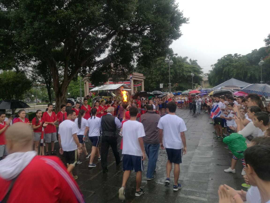 Las fuertes lluvias que cayeron la tarde de este jueves en gran parte del Valle Central acompañaron el paso de los estudiantes que trasladan la antorcha de la Independencia hacia la Vieja Metrópoli, en Cartago.