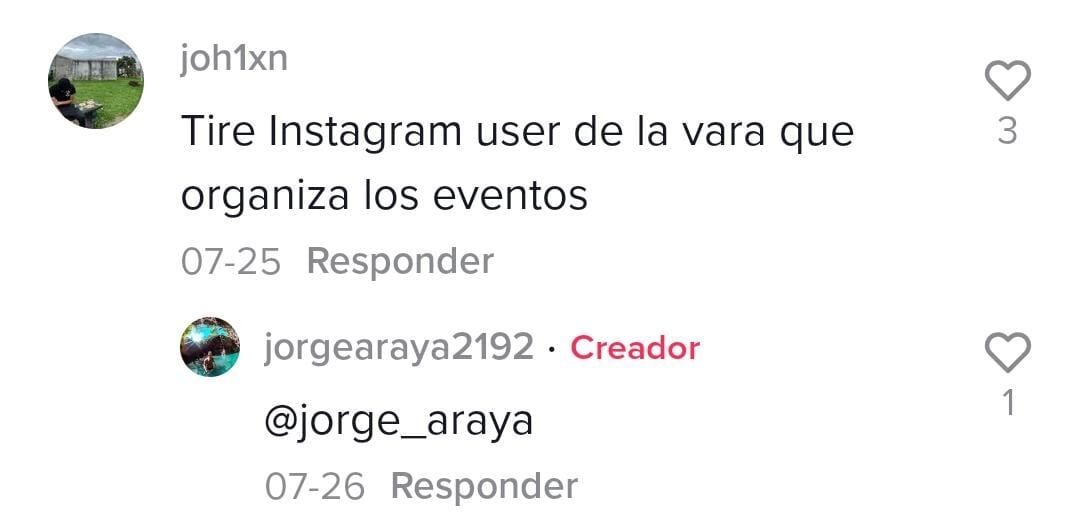 En la entrevista, aseguró que él no organiza el evento. Lo afirmó a pesar de que en su cuenta de TikTok, cuando personas le preguntan por el contacto de organizadores, este responde con su propio nombre de usuario o asegura que para ir a las fiestas deben comunicarse con él por Instagram.