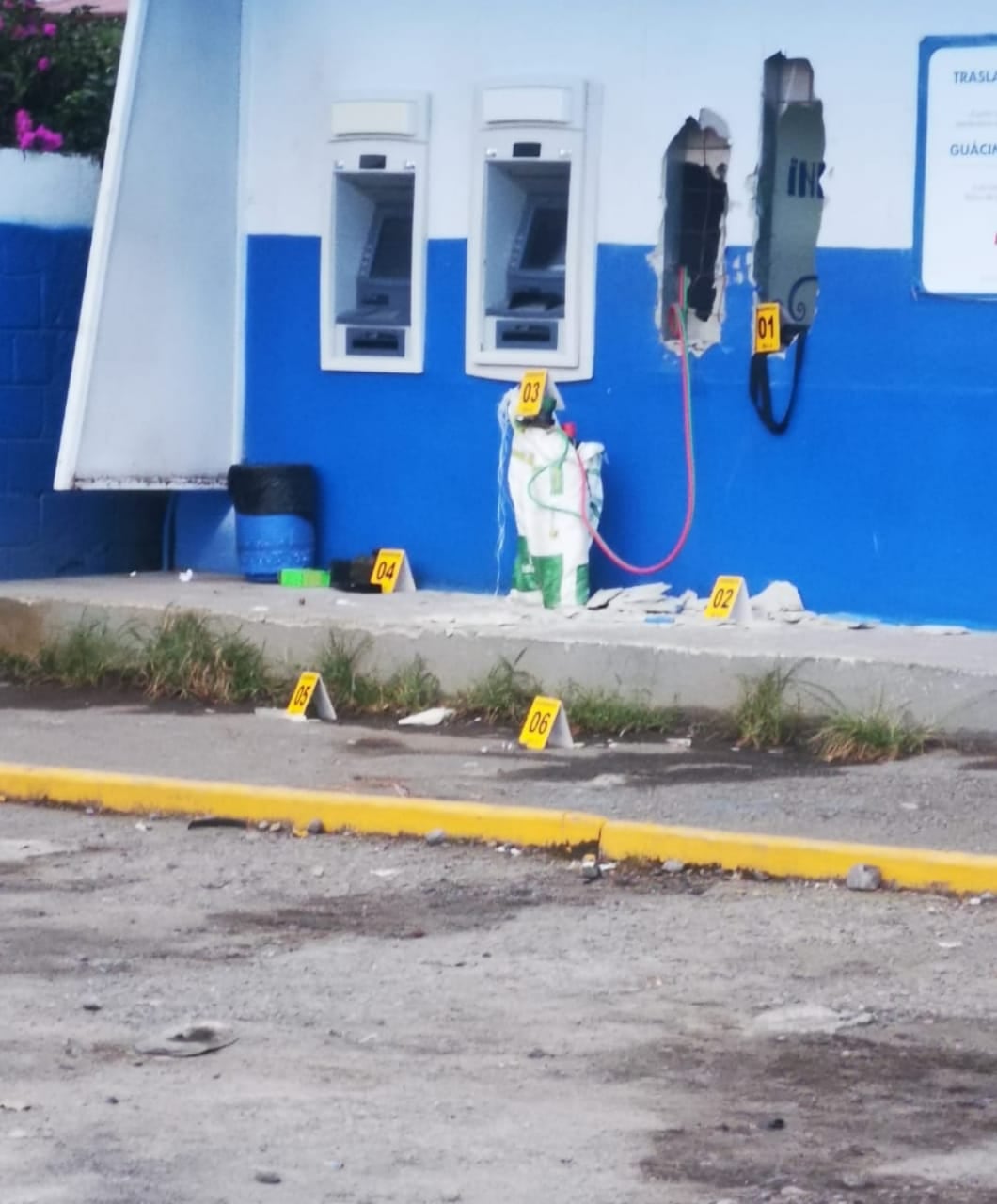 En cuanto al incidente de este miércoles, se registró a las 3:28 a. m. cuando ingresó una alerta al Sistema de Emergencias 9-1-1 sobre un intento para robar los cajeros del Banco de Costa Rica (BCR), instalados en una de las paredes externas del almacén Colono Construcción, en Pocora de Limón.
