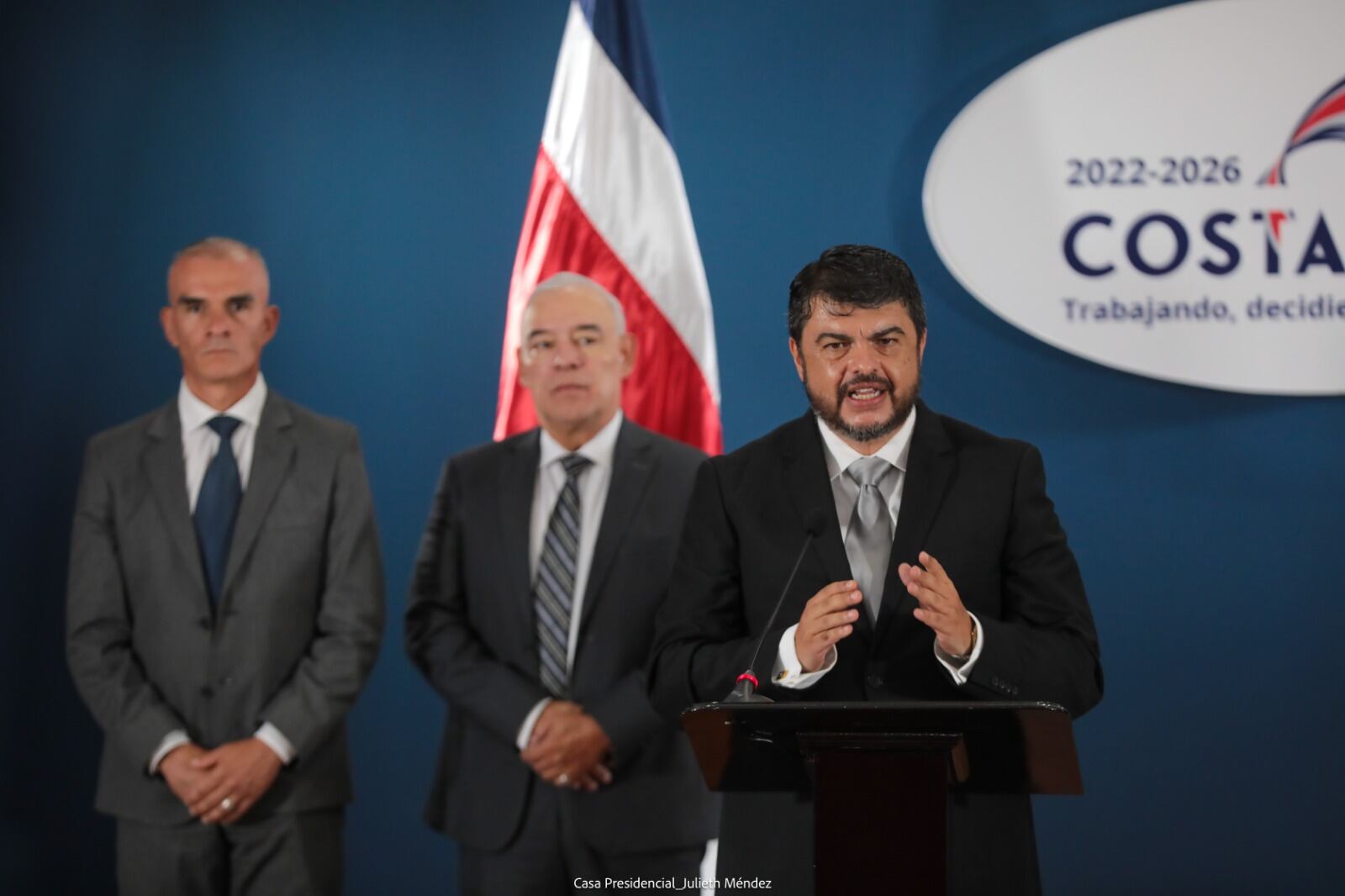 “Debemos anunciar que dentro del proyecto Costa Rica Segura, iniciamos una etapa de Costa Rica Segura Plus, en la que vamos a teledirigir los objetivos de manera central a la lucha contra los homicidios en el país y esencialmente centrados en el sicariato. Esa es la línea operacional que hemos determinado con autorización del señor presidente de la República”.