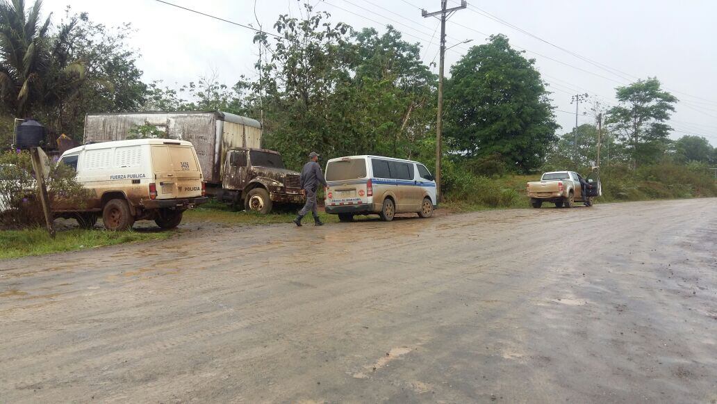 Este sábado entre el sector de Coopevega y Crucitas, también habían varias patrullas a lo largo de la calle de lastre, humedecida por las lluvias que cayeron durante la mañana.