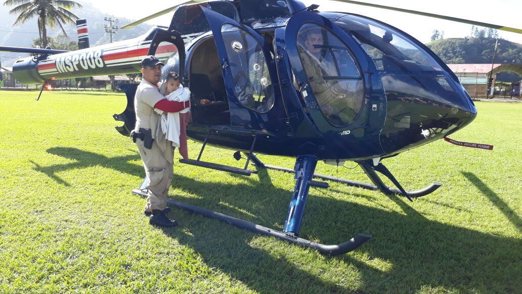 Thiago, de acuerdo con la información suministrada por el Ministerio de Seguridad Pública, fue atendido por paramédicos del Servicio de Vigilancia Aérea (SVA) y de inmediato lo trasladaron en helicóptero al Hospital Nacional de Niños (HNN).