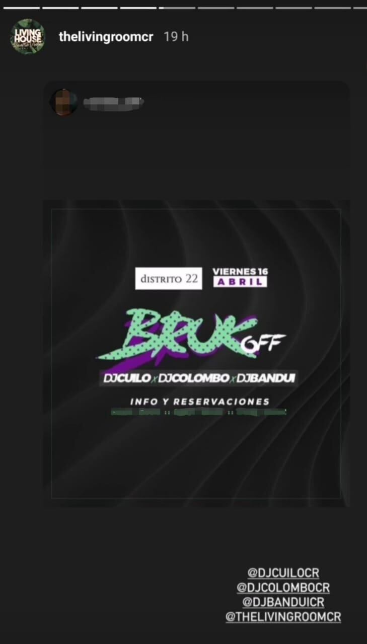 Según la publicidad que se hizo de esta fiesta ilegal en redes sociales, la misma habría sido promocionada por el negocio “The Living Room”, el cual anteriormente ha realizado eventos de este tipo, en los que se incumplen los protocolos para prevenir la covid-19.