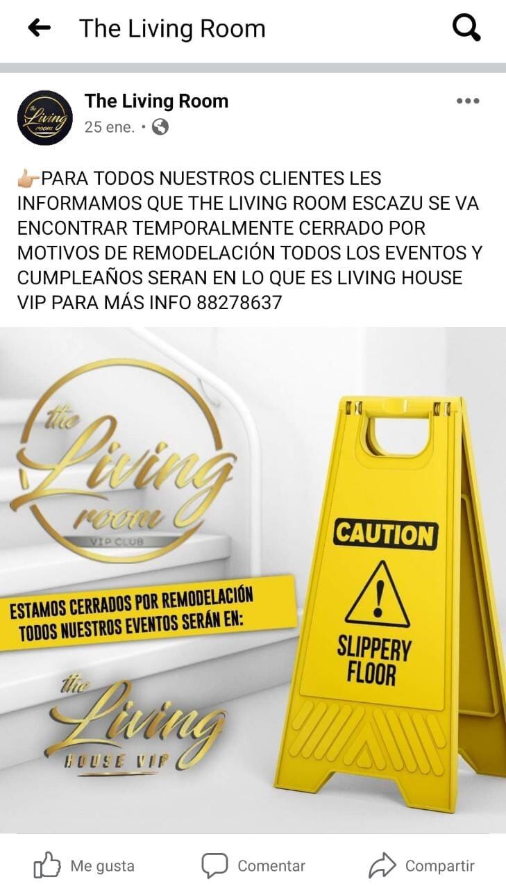 Según confirmó la Policía Municipal ante consultas de este medio, el negocio que supuestamente se dedica a promocionar estas actividades se llama “The Living Room”.