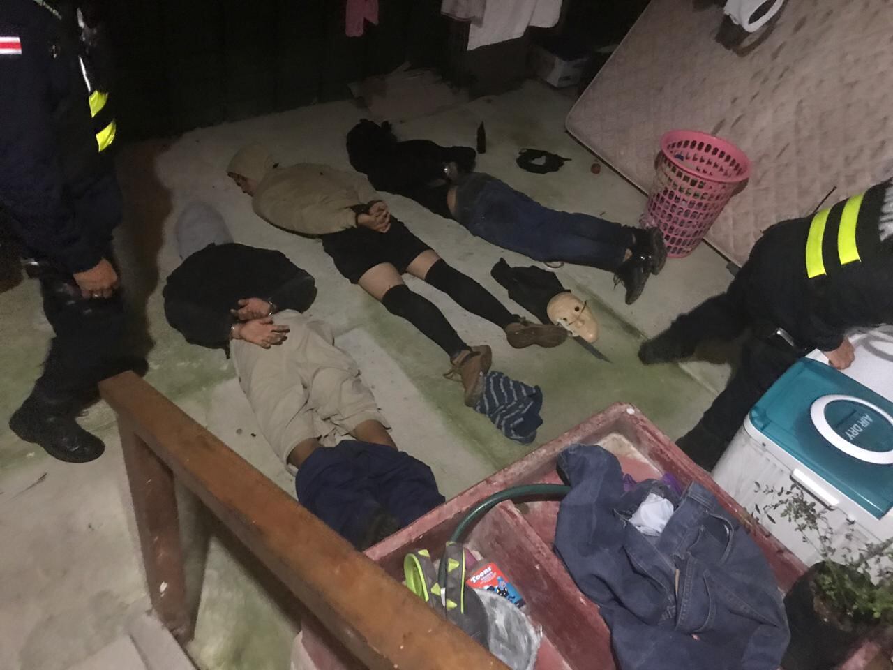 Oficiales de la Fuerza Pública detuvieron a tres individuos enmascarados cuando intentaban huir luego de saquear una vivienda en Ramal 7 de Batán, Limón.