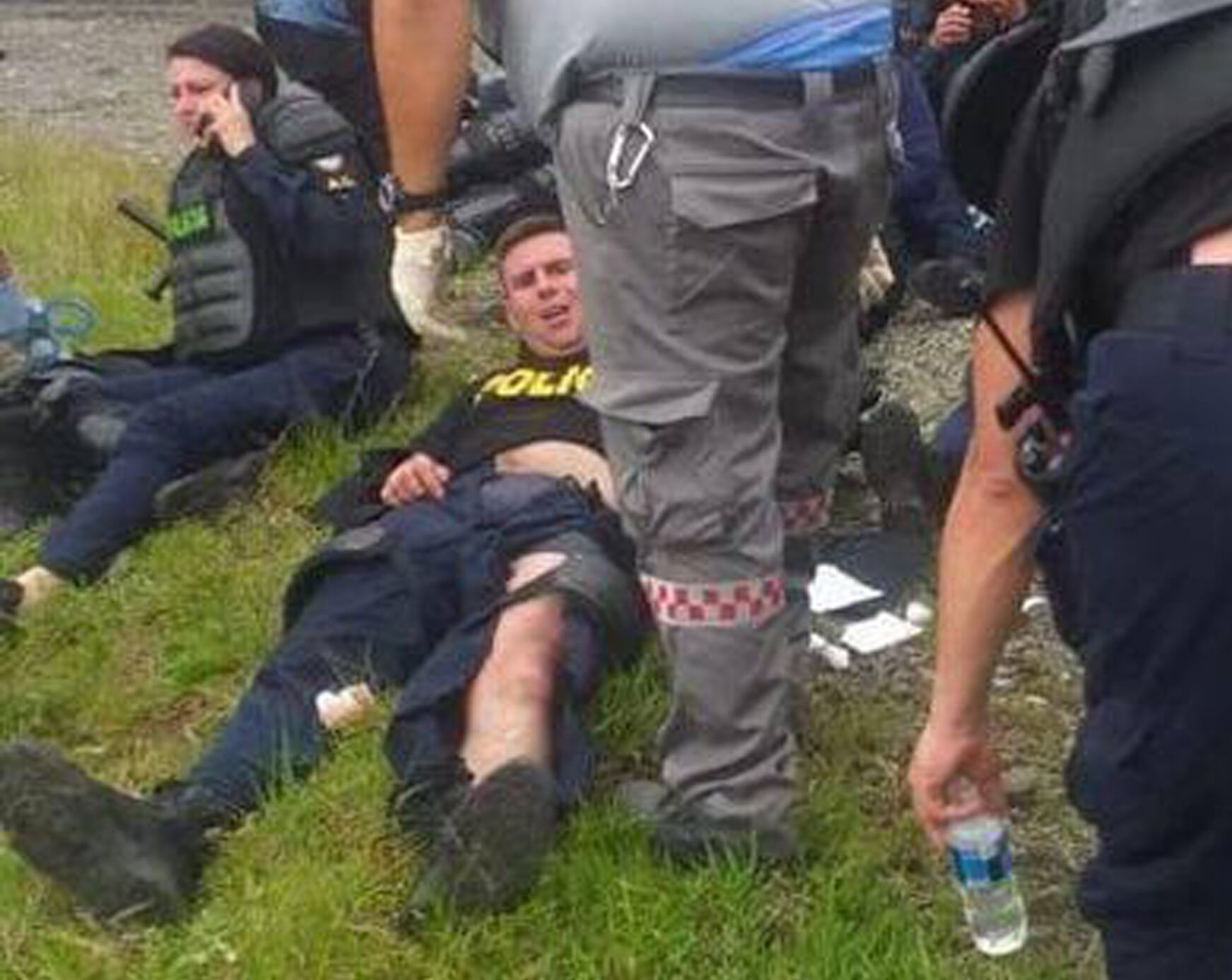 La agresión fue tan severa que les quebraron los escudos de protección, les robaron los chalecos de protección e incluso algunos ni siquiera llevaban casco y por eso uno de ellos sufrió una lesión en el cráneo.