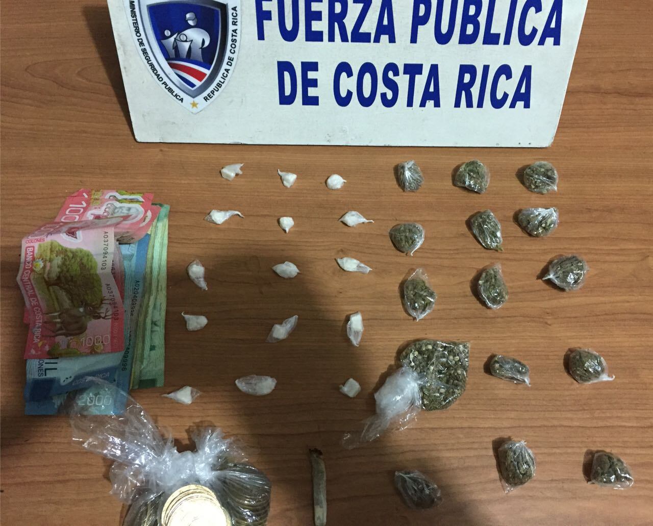 Al sujeto, de 22 años, también se le incautó dinero en efectivo, ¢65.000 en billetes y ¢8.500 en monedas, los cuales se presume fueron obtenidos mediante la venta de los estupefacientes, reportó el Ministerio de Seguridad Pública (MSP).