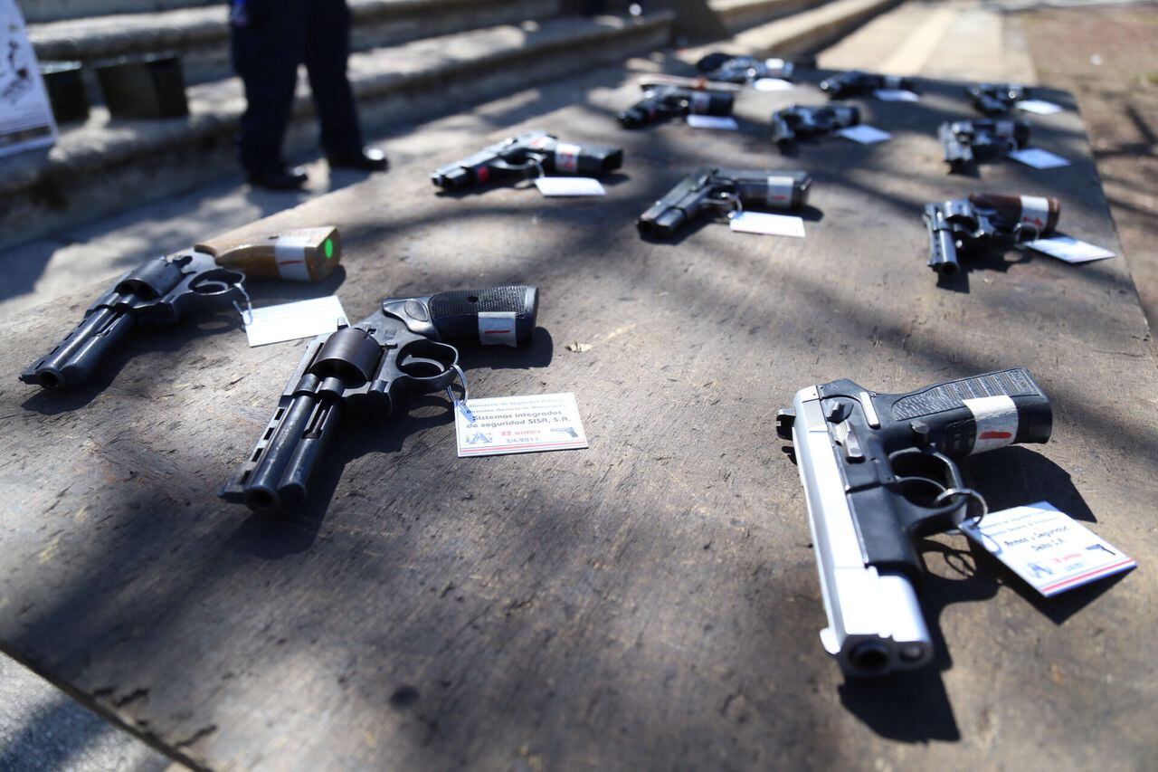 En esa misma conferencia de prensa, las autoridades destruyeron una muestra de cinco armas de empresas de seguridad privada. Ese armamento ya no era usado por esas compañías, por lo que se optó por desaparecerlas.