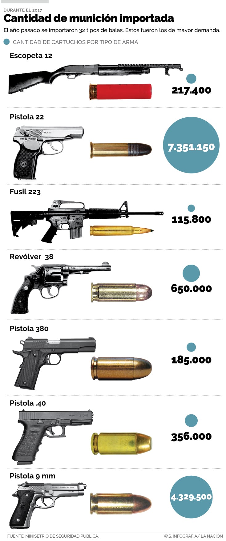 Cifras del Ministerio de Seguridad Pública revelaron que entre el 2006 y el 2016, el país importó más de 100 millones de cartuchos.