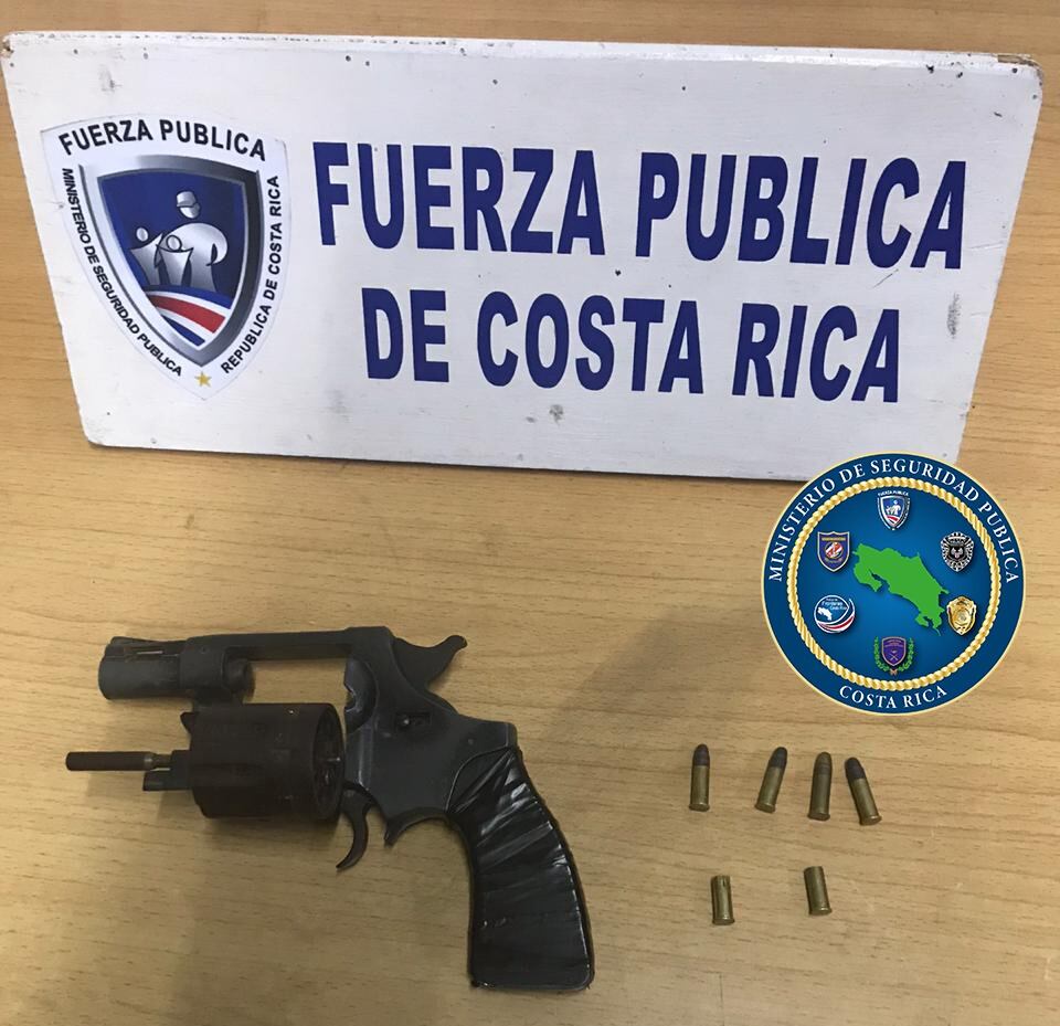 Los presuntos ladrones portaban un revólver calibre 22, el cual fue decomisado, al igual que seis teléfonos celulares, dos bolsos, dos carteras de mujer, una billetera, una botella de licor y ¢74.800 en efectivo.
