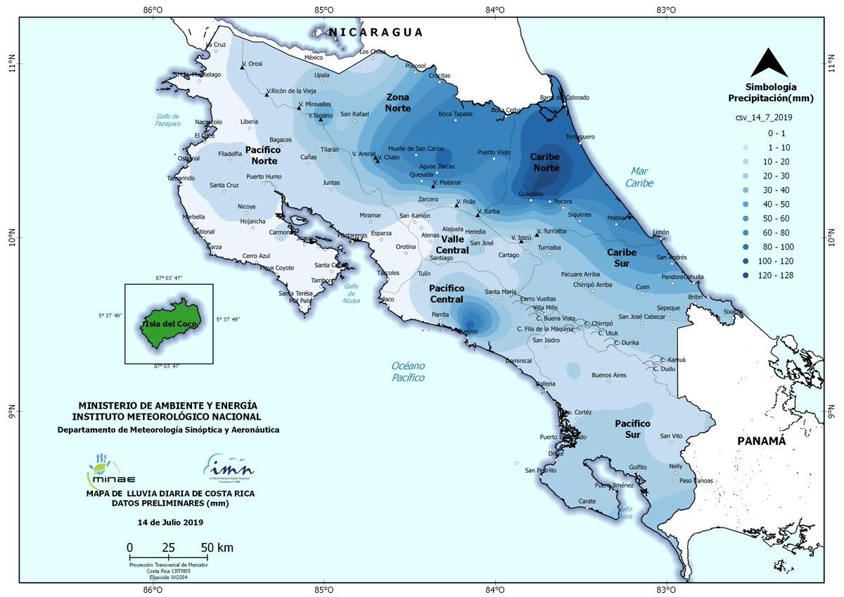 La segunda quincena de julio se prevé con más lluvias que la primera, por lo que el IMN pide precaución en zonas vulnerables a inundaciones o propensas a deslizamientos, en especial en las montañas de la zona norte y Caribe norte.