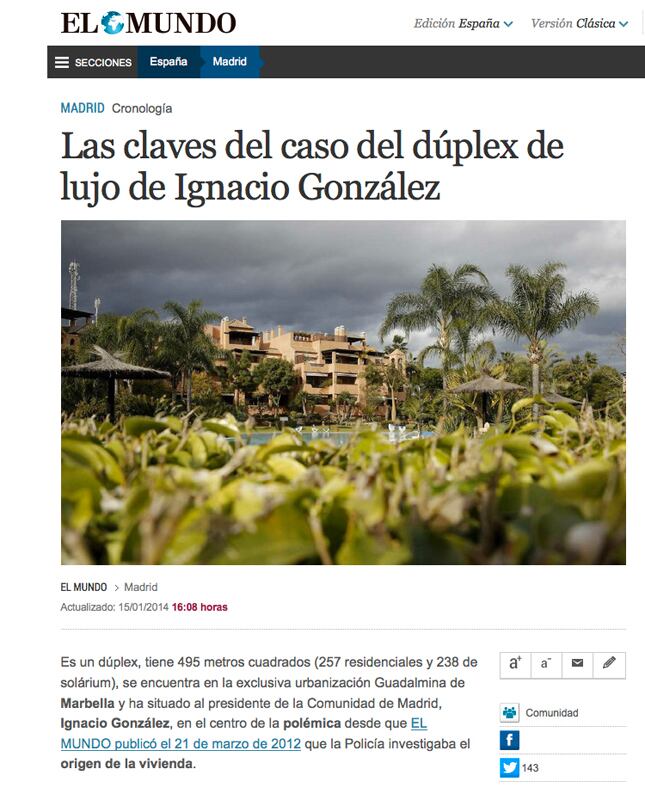 En ese último año, El Mundo publicó que la Policía investigaba el origen del dinero para la compra de la propiedad.