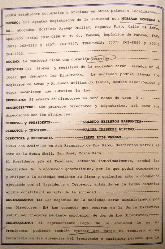 Los nombres de Wálter Céspedes Alpízar, Orlando Heilbron Barrantes e Irene Roig Vargas se dieron a conocer como los propietarios de la sociedad panameña Waldorf Overseas Investment.