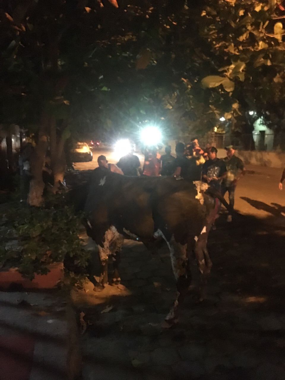 El toro, llamado El Dólar, fue capturado, amarrado a un árbol y subido al camión por sus dueños, quienes lo llevaron al redondel.