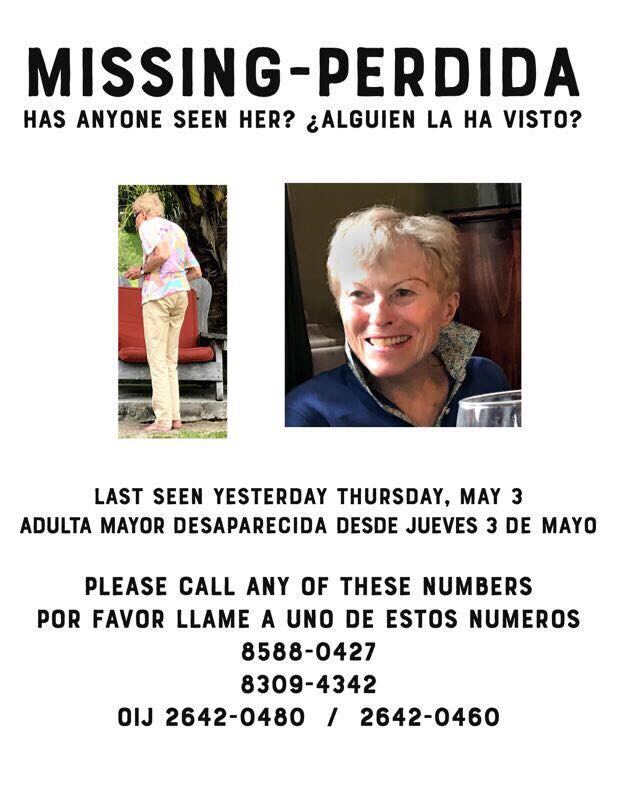 De acuerdo con lo manifestado por familiares a la Policía Judicial, la mujer se perdió el jueves a las 2 p. m. cuando salió a caminar desde una casa en la comunidad de Delicias y no se volvió a saber nada de ella. Se presume que siguió hacia Montezuma.