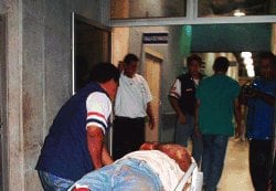 Gómez cayó al suelo y casi de inmediato trató de levantarse, mientras se tocaba el cuello, por donde ya salía mucha sangre. Pero Gómez no pudo más y se desvaneció,