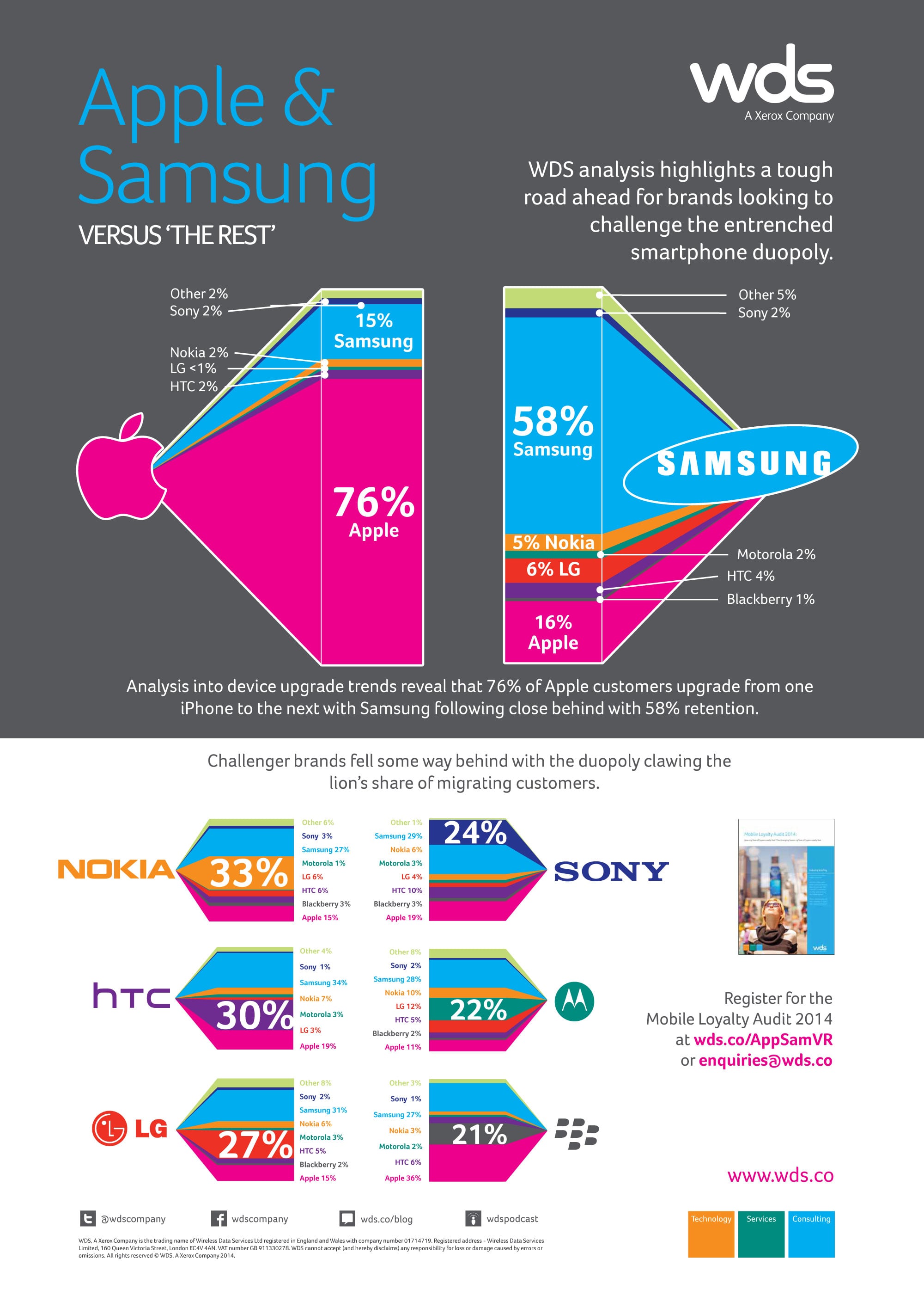 Los datos divulgados en el Congreso Mundial Móvil de este año son de una encuesta conducida por la compañía WDS, especializada en atención al cliente para la industria móvil, por la cual se entrevistó a 3.000 propietarios de smartphones en tres mercados clave: Estados Unidos, Reino Unido y Australia. Los datos son parte de su informe Auditoría de Fidelización Móvil realizado cada año; un estudio global de la lealtad en la industria móvil.