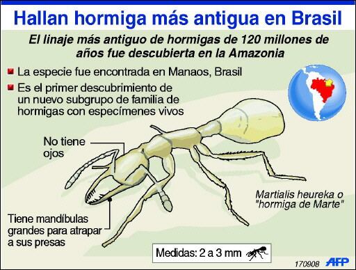 Esta hormiga es probablemente la descendiente de los ancestros más antiguos de estos insectos y fue la primera en evolucionar, estima Christian Rabeling, un biólogo de la Universidad de Texas en Austin (sudoeste), que descubrió este espécimen en 2003 en la brasileña Manaos, en el corazón de la Amazonia.