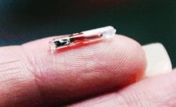 En su mano derecha, específicamente entre el dedo pulgar y el índice, el sueco Patric Lanhed lleva instalado un microprocesador del tamaño de un grano de arroz. Se trata de una cápsula de cristal hecha de vidrio borosilicato, dentro de la cual hay una placa con una capacidad de 2 kilobytes para guardar información.