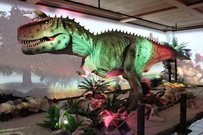 Variedad. Al ingresar a esta exposición, los visitantes tendrán una variedad de robots gigantes. El más grande es el Carnotaurus , un animatronic (animal automatizado) de 4,5 metros de largo, de este carnívoro, con cabeza pequeña y cuernos.