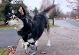 Después de varios diseños, pruebas y reimpresiones, el equipo finalmente creó unas patas que permiten al animal moverse casi sobre cualquier superficie y se ajustan a su cuerpo de forma que Derby recupera el equilibrio natural de su cuerpo canino.