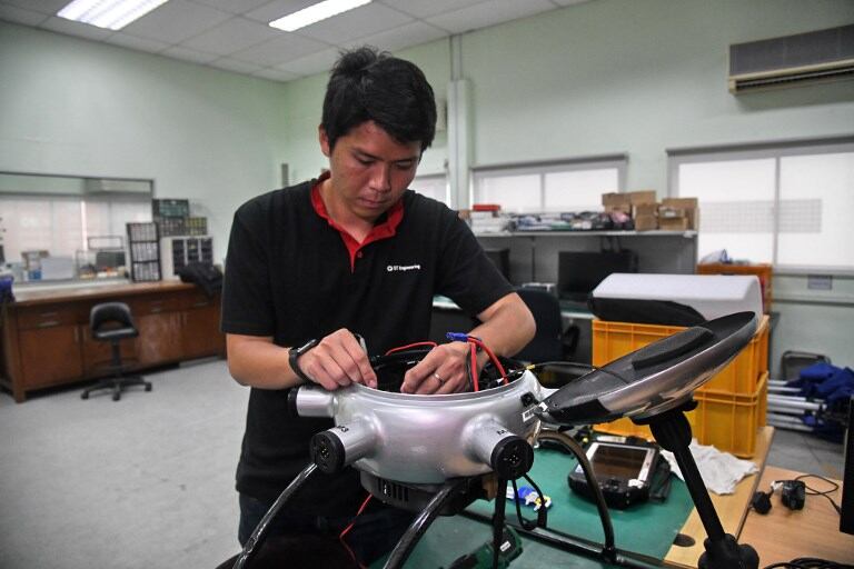 "El principal reto son los riesgos para la gente en el terreno y los riesgos para los aviones que vuelan, así como el riesgo de chocar con un edificio", explica a la AFP Teong Soo Soon, director de programa en la unidad de negocio de drones en ST Aerospace.