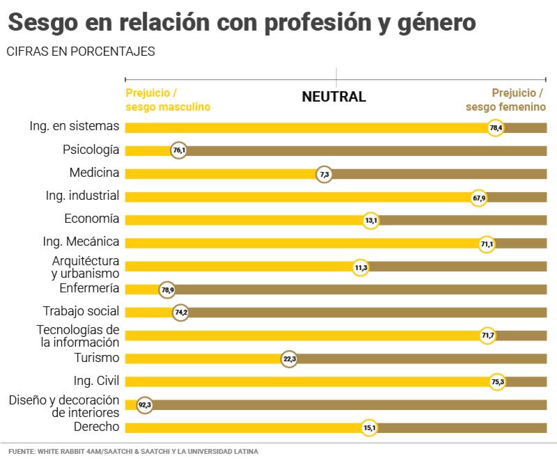 “Lo interesante de esta técnica es que mide el prejuicio o sesgo implícito que todos tenemos, pero desconocemos. Cuando nos preguntan si una carrera tiene género, razonamos y generalmente respondemos que no. Muchas veces actuamos por un supuesto impulso que en el fondo esconde estos prejuicios. Estudiar los prejuicios hace que tomemos conciencia y podamos decidir sabiendo que en nuestro interior hay una tendencia que debemos contrarrestar”, aseguró en un comunicado de prensa Juan Bernárdez, Chief Strategy Officer de White Rabbit - Saatchi & Saatchi.