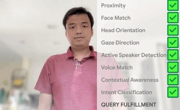 El proceso en el que se basa ‘Look and Talk’ consta de tres fases. Para empezar, el asistente identifica la presencia de una persona mediante una tecnología que detecta el rostro y establece la distancia a la que se sitúa el sujeto.