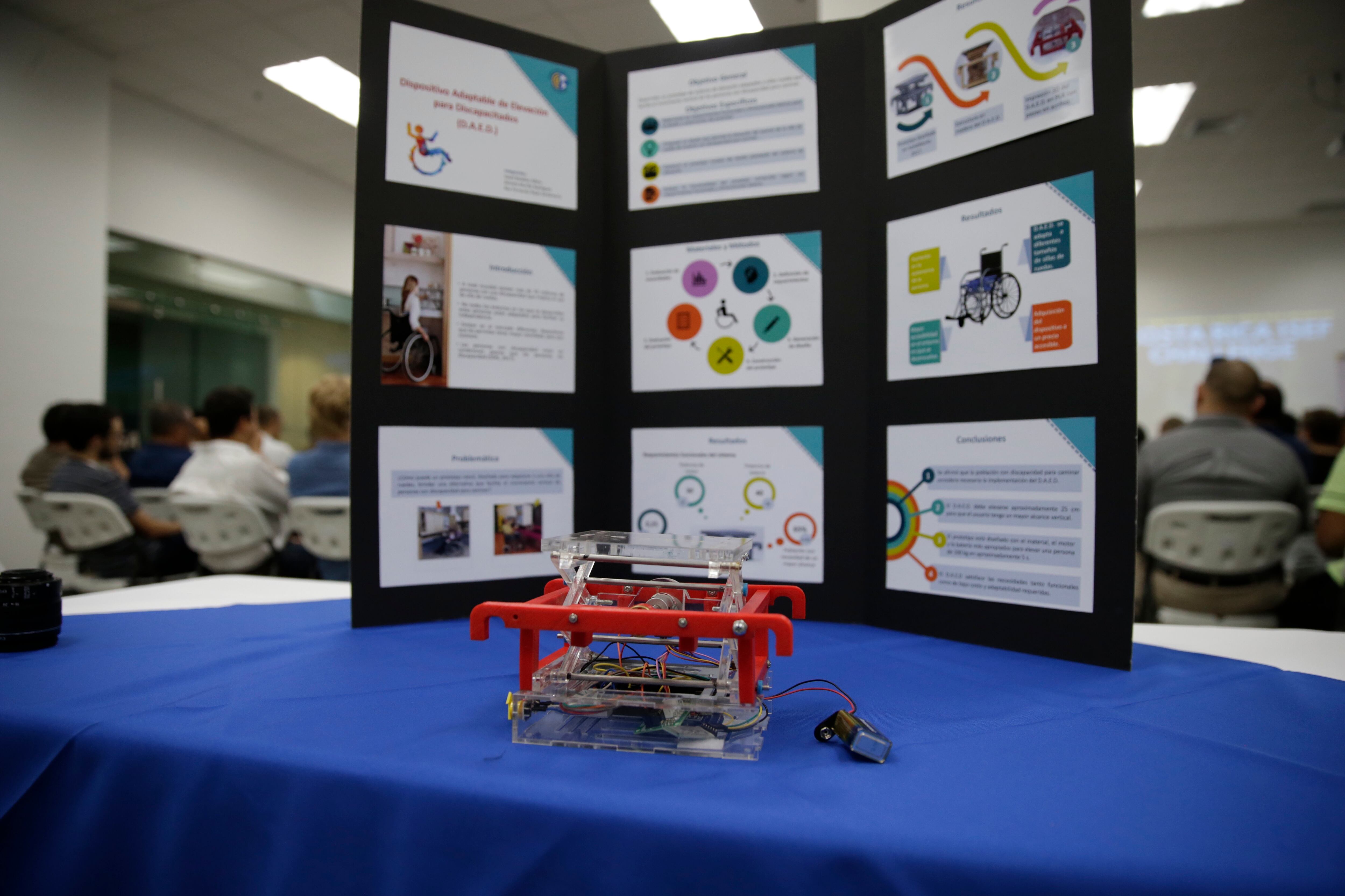 Mientras que Fernando Rojas, Daniela Murillo, Hazel Bolaños son los responsables del Dispositivo Adaptable de Elevación para Discapacitados.