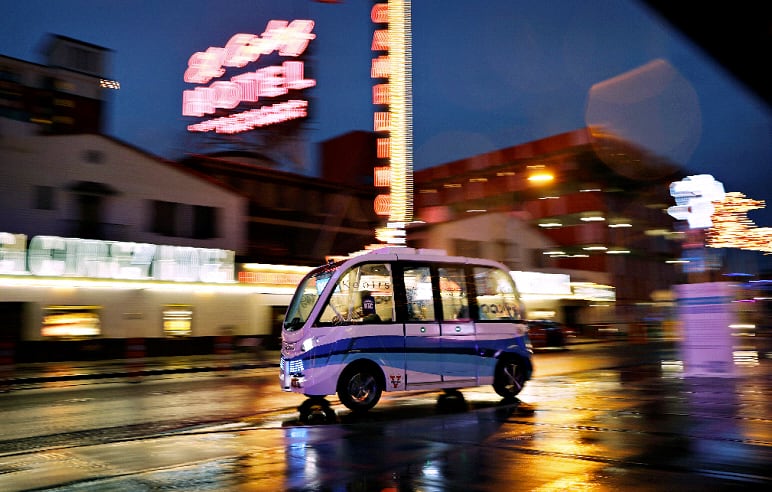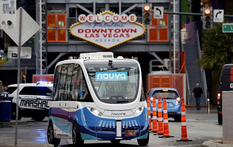 Hay una nueva emoción en las calles del centro de Las Vegas, donde tanto los grandes apostadores como los que juegan poco se están subiendo a lo que las autoridades llaman el primer transporte eléctrico sin conductor en una calle pública estadounidense.