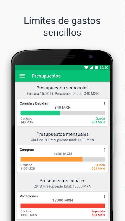 Permite crear presupuestos basados en los ingresos y egresos, lo que da la posibilidad de establecer un límite de gastos por mes y, cualquier sobrante de dinero se contempla como un extra al mes siguiente.