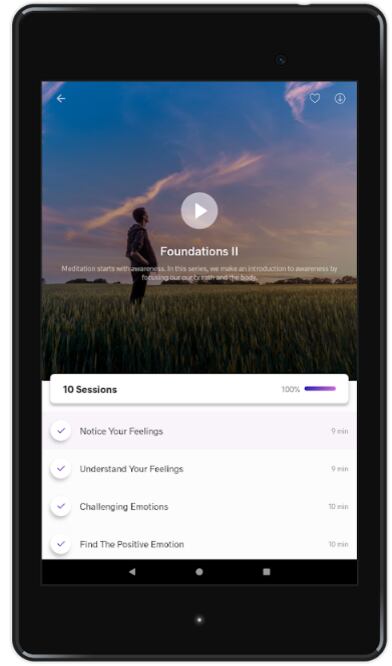 Su música, sesiones de respiración y de terapia en idioma español e inglés, fueron desarrolladas por un grupo de especialistas con la misión de que los usuarios logren habilidades clave: tener conciencia corporal, liberar estrés, dormir bien, aceptarse y disfrutar de auto confianza, compasión y gratitud.