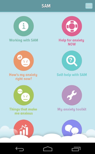 La principal diferencia de SAM con la demás aplicaciones aquí mencionadas, es que esta se basa en que sea la persona por sí misma la que encuentre una solución a sus problemas, primero entendiéndolos y luego resolviéndolos a través de una serie de ejercicios y guías.
