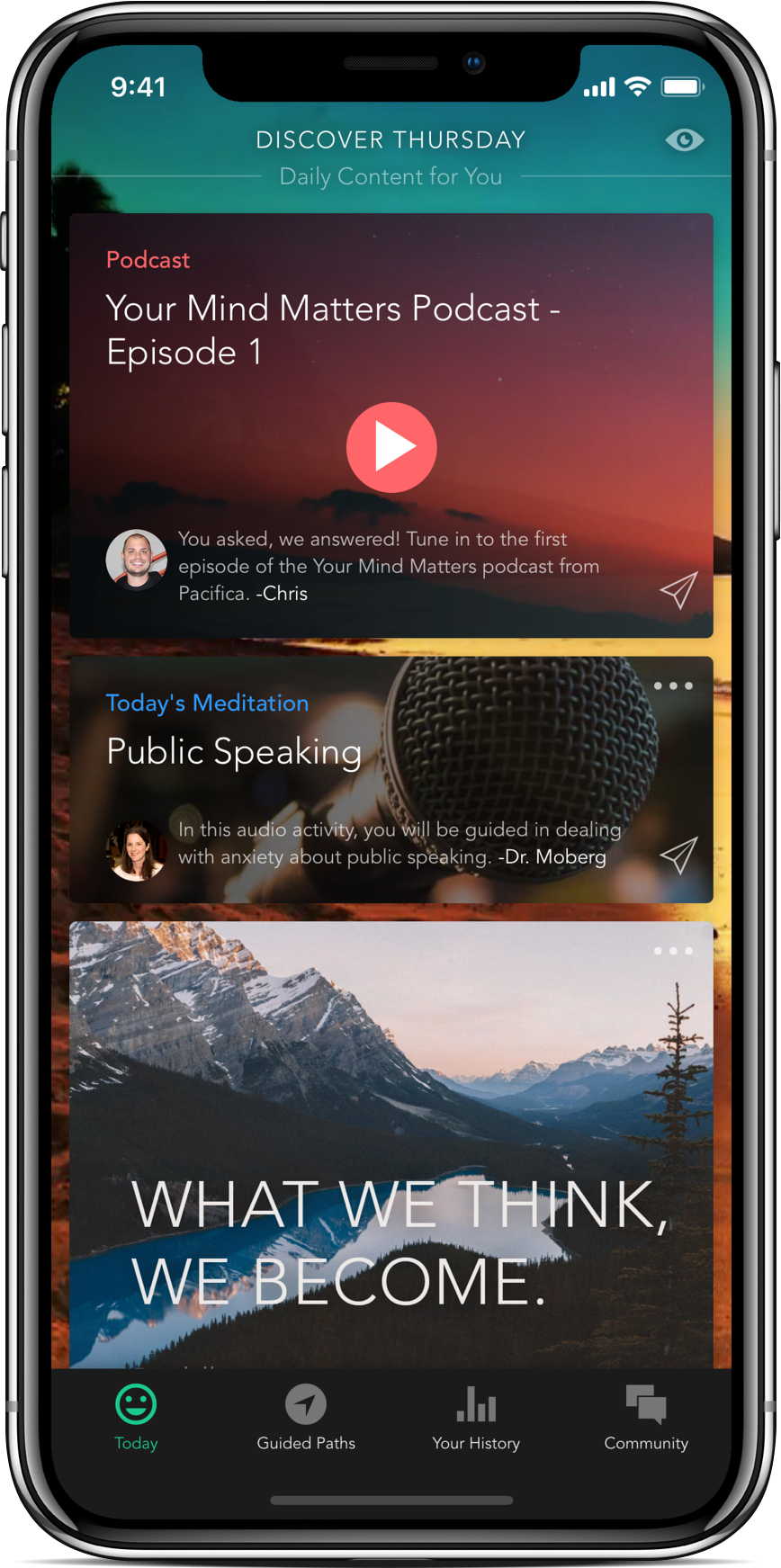 Pacífica ofrece herramientas diseñadas por psicólogos y basadas en terapias de comportamiento cognitivo, la meditación consciente, la relajación y el seguimiento del estado de ánimo y la salud.