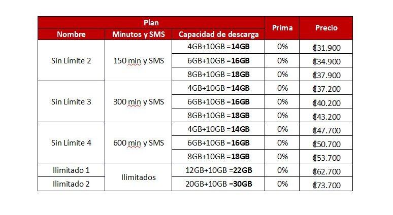 | Plan pospago | 4G@3 | 4G@4 | 4G@5 | 4G@6 |
