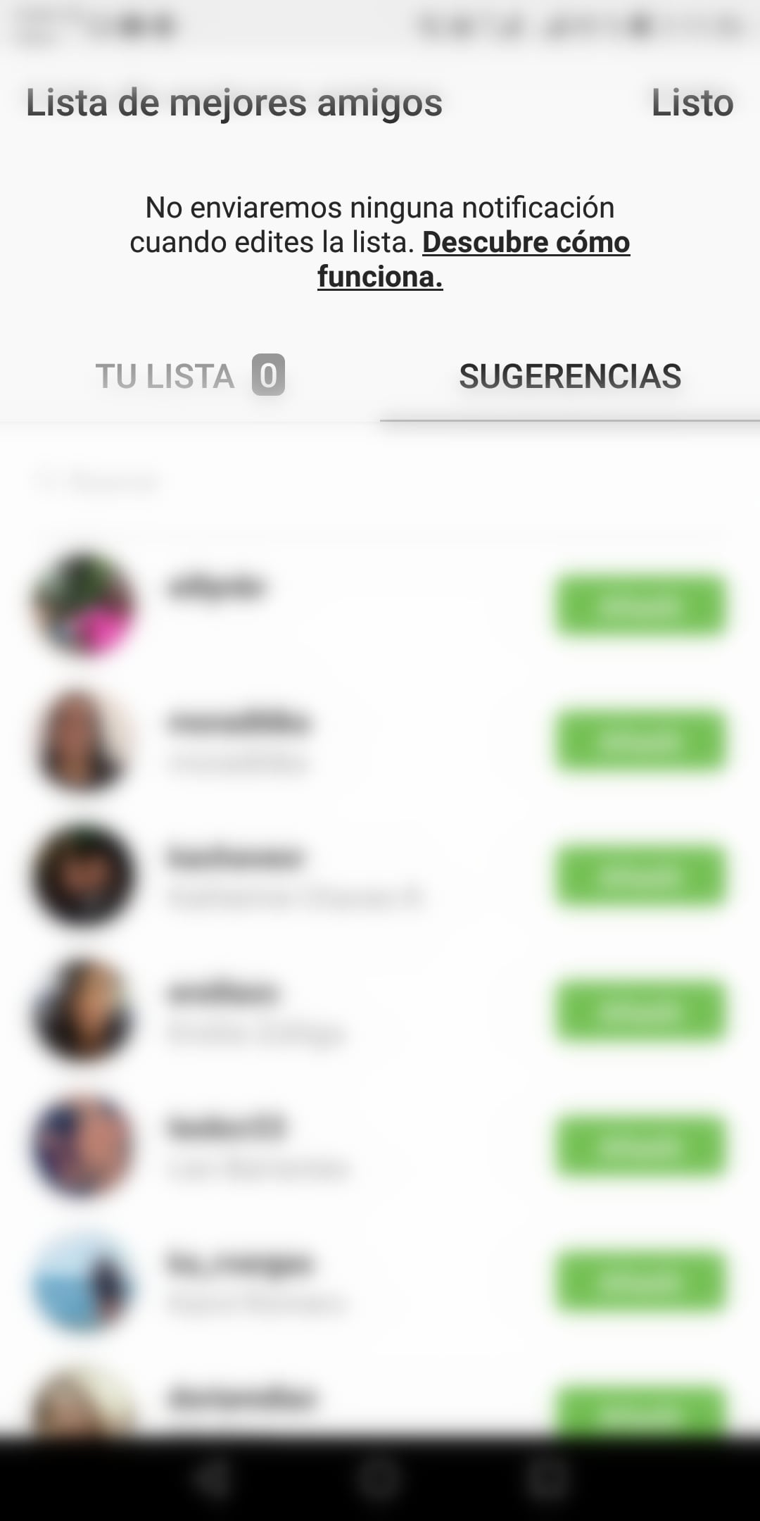 - Al llegar a la opción de “Mejores amigos”, el usuario podrá añadir a los amigos que considere deberán estar en esa lista.