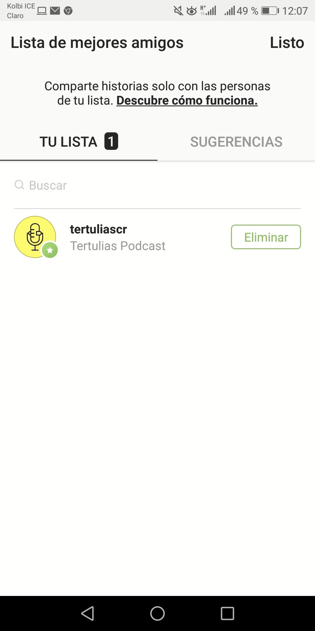 ¿Cómo sabrá que es parte de uno de estos listados? Pues porque si alguien lo agrega a una, usted verá una insignia verde cuando esté observando sus historias y también un anillo verde alrededor de su foto de perfil.
