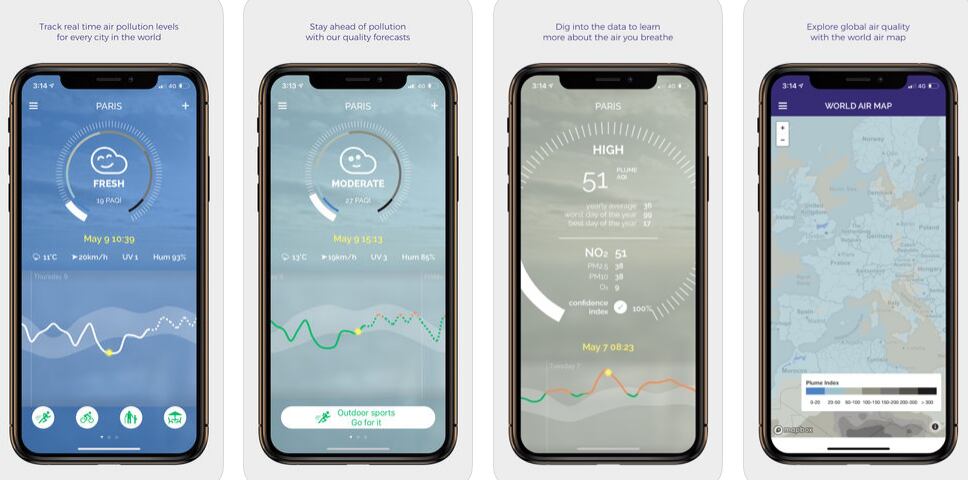 Esta app funciona mediante un algoritmo de inteligencia artificial ambiental que le indica los niveles reales de contaminación que hay en el lugar donde se encuentra.
