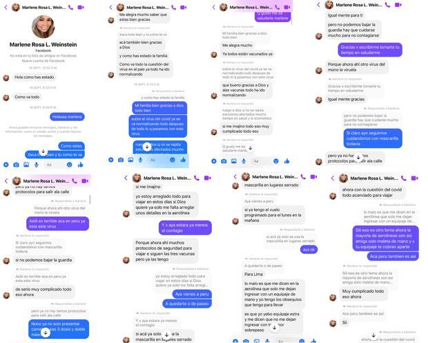 “Me contactó por Messenger de Facebook, una aplicación que no suelo utilizar. Se tomaba la molestia de escribirme frecuentemente. Otras veces solo me enviaba stickers. Como no ingreso mucho a la app, en ocasiones le respondía después de semanas. Pero hasta ese momento no dudé que se tratara de ella”, contó a El Comercio.