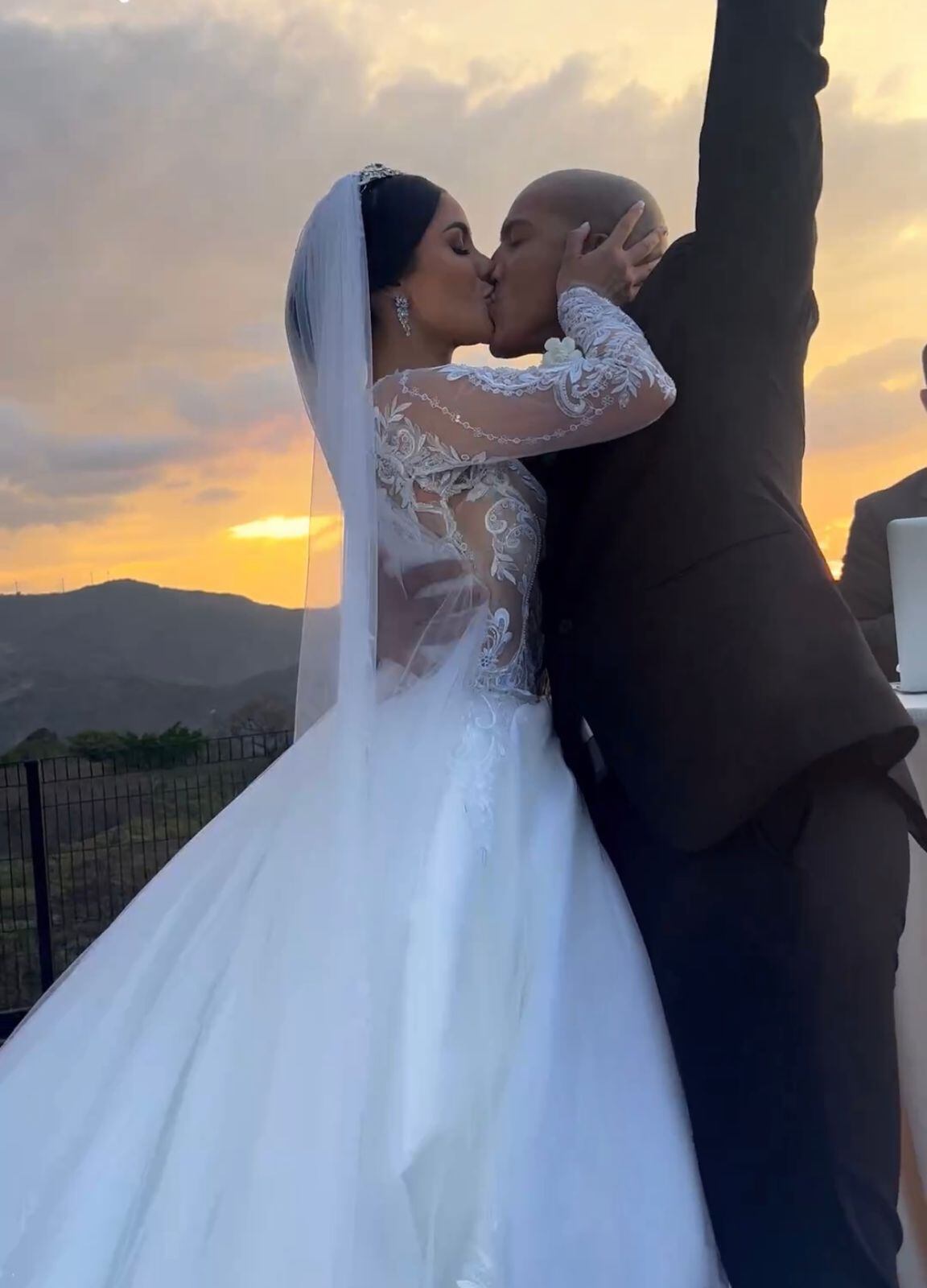 En un jardín y con el atardecer de fondo, la pareja contrajo matrimonio luego de poco más de seis años de relación.