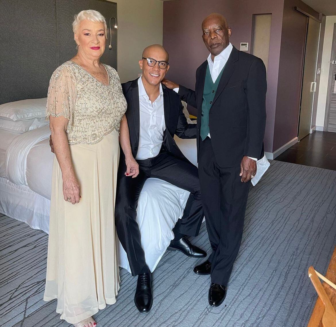 Además, minutos antes de la boda, el modelo presumió a sus padres, Eduardo Morgan y Ligia Araya, quienes le pidieron que mantuviera la calma.