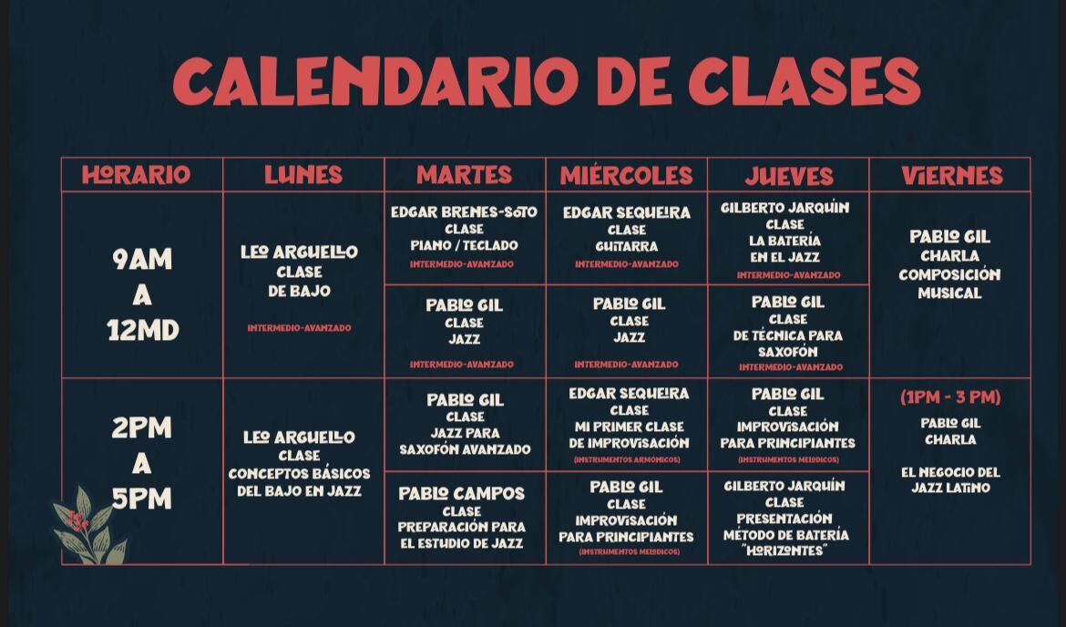Las clases y charlas abordarán distintas temáticas como técnicas para instrumentos como guitarras, saxofón y bajo, así como la improvisación en el jazz.